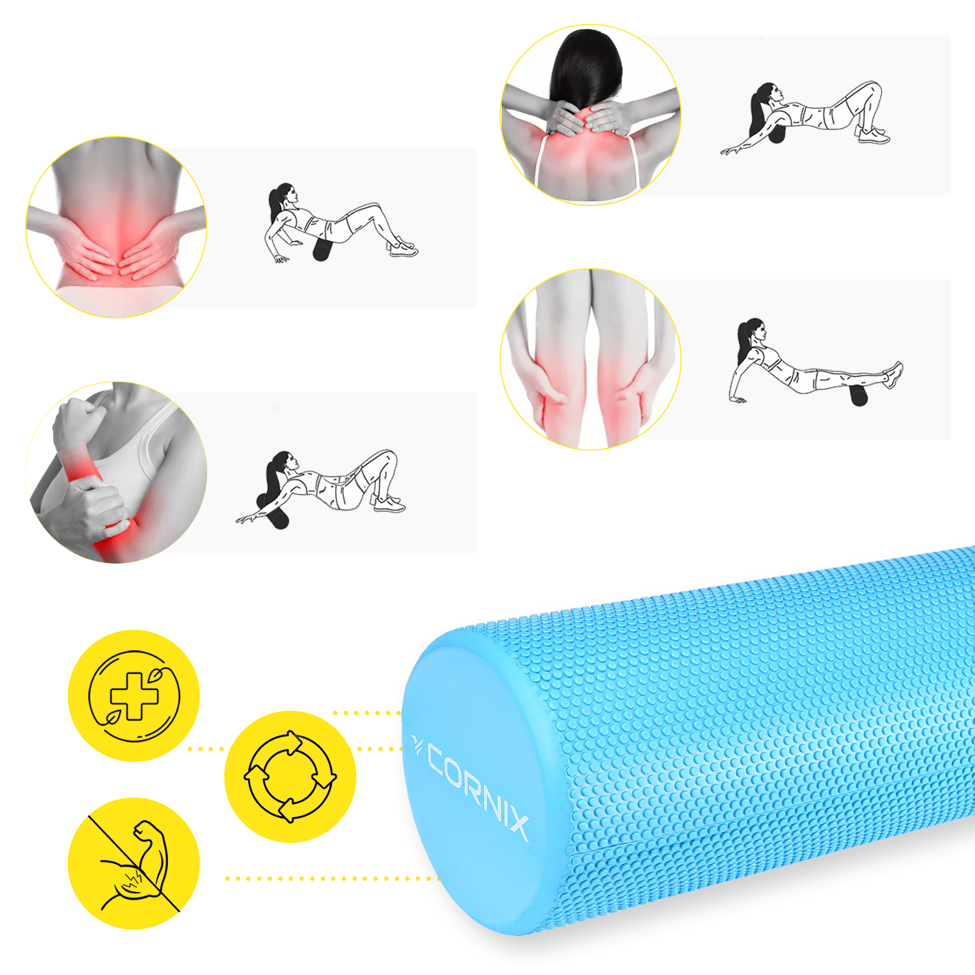 Характеристики - Масажний ролик Cornix EVA+ 45 x 15 см (валик, роллер) XR-0306 Blue