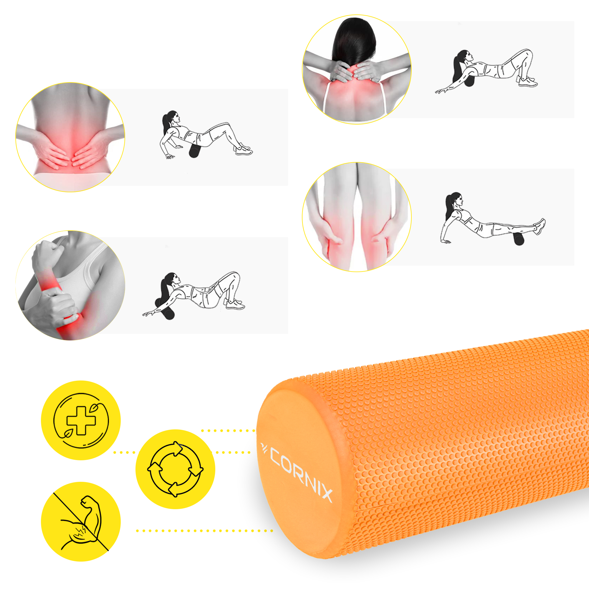 Характеристики - Масажний ролик Cornix EVA+ 60 x 15 см (валик, роллер) XR-0307 Orange